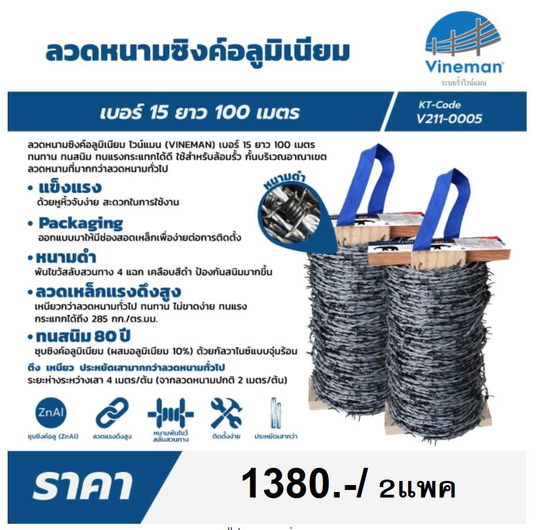 ลวดหนามซิงค์อลูมิเนียม ไวน์แมน เบอร์ 15 ยาว 100 เมตร*2แพค