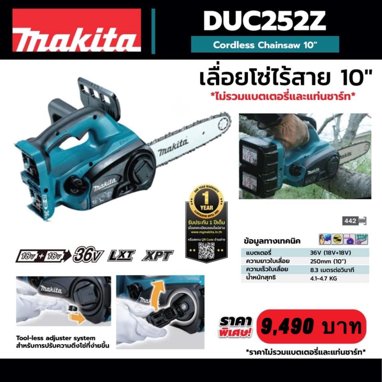 เลื่อยโซ่ไร้สาย เลื่อยตัดกิ่งไม้ไร้สาย 36 โวลต์ MAKITA รุ่น DUC252Z ขนาด250 มม. (10 นิ้ว)