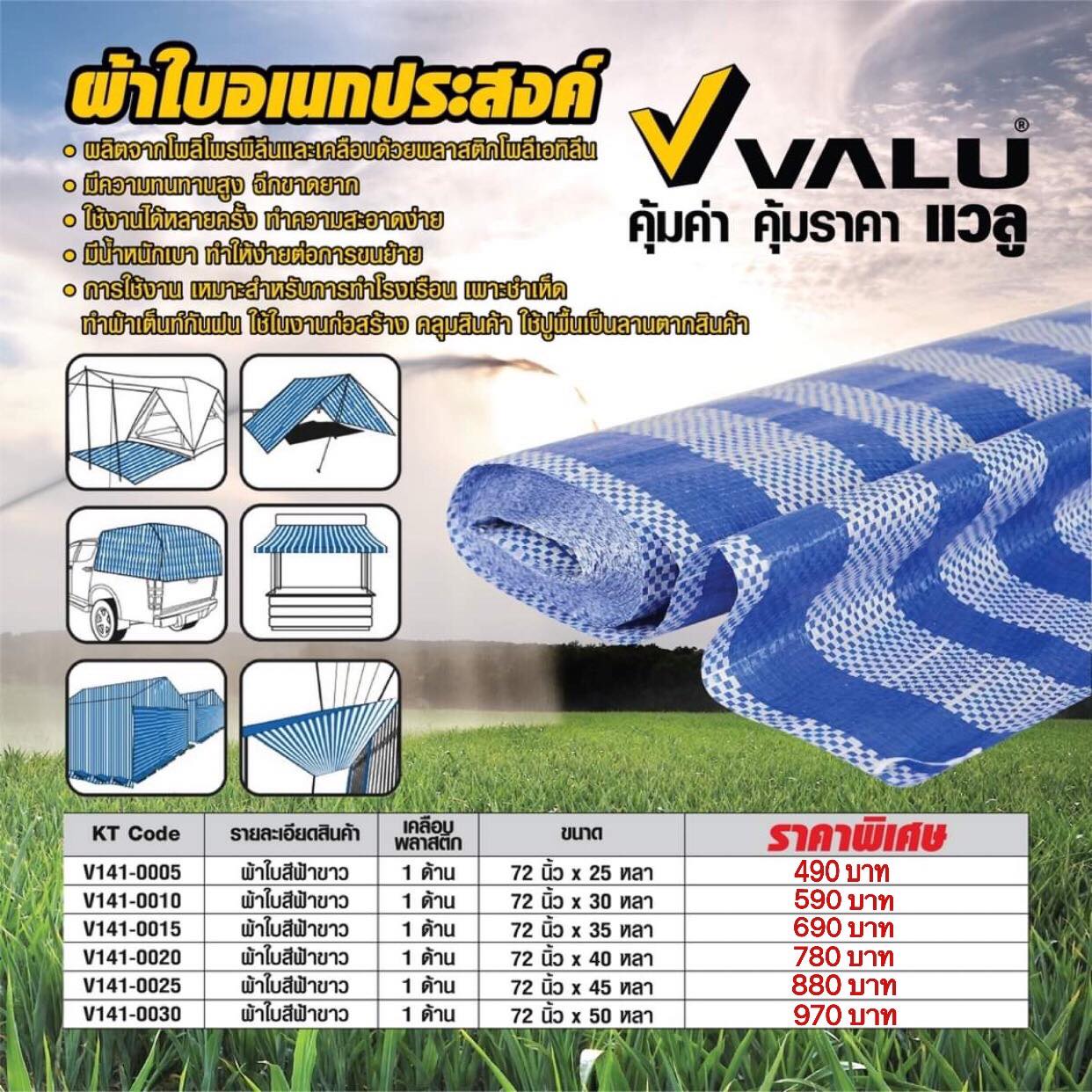 ผ้าใบสีฟ้าขาว แวลู (VALU) เคลือบ 1 ด้าน