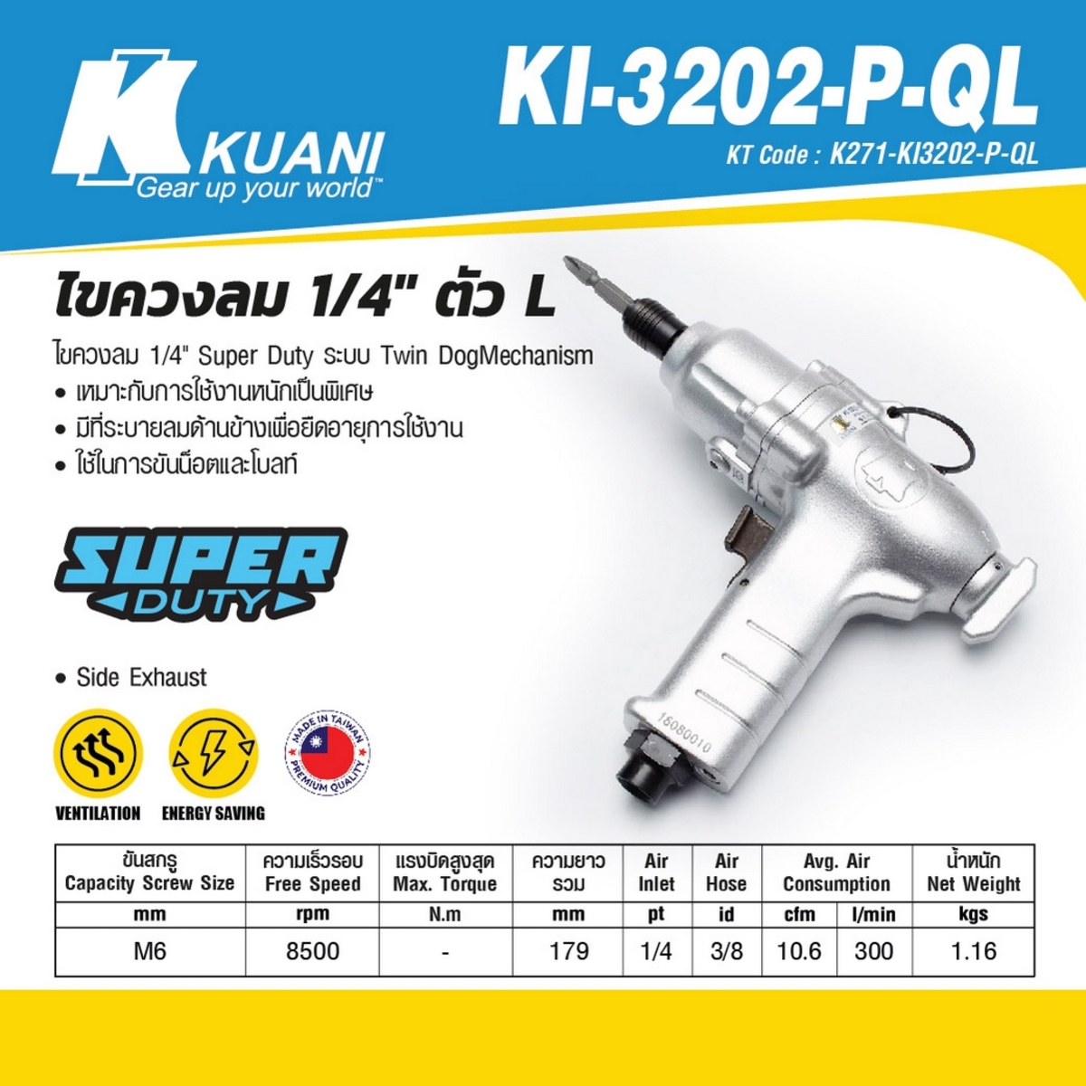 KI-3202-P-QL ไขควงลม 1/4" ตัว L TWIN DOG