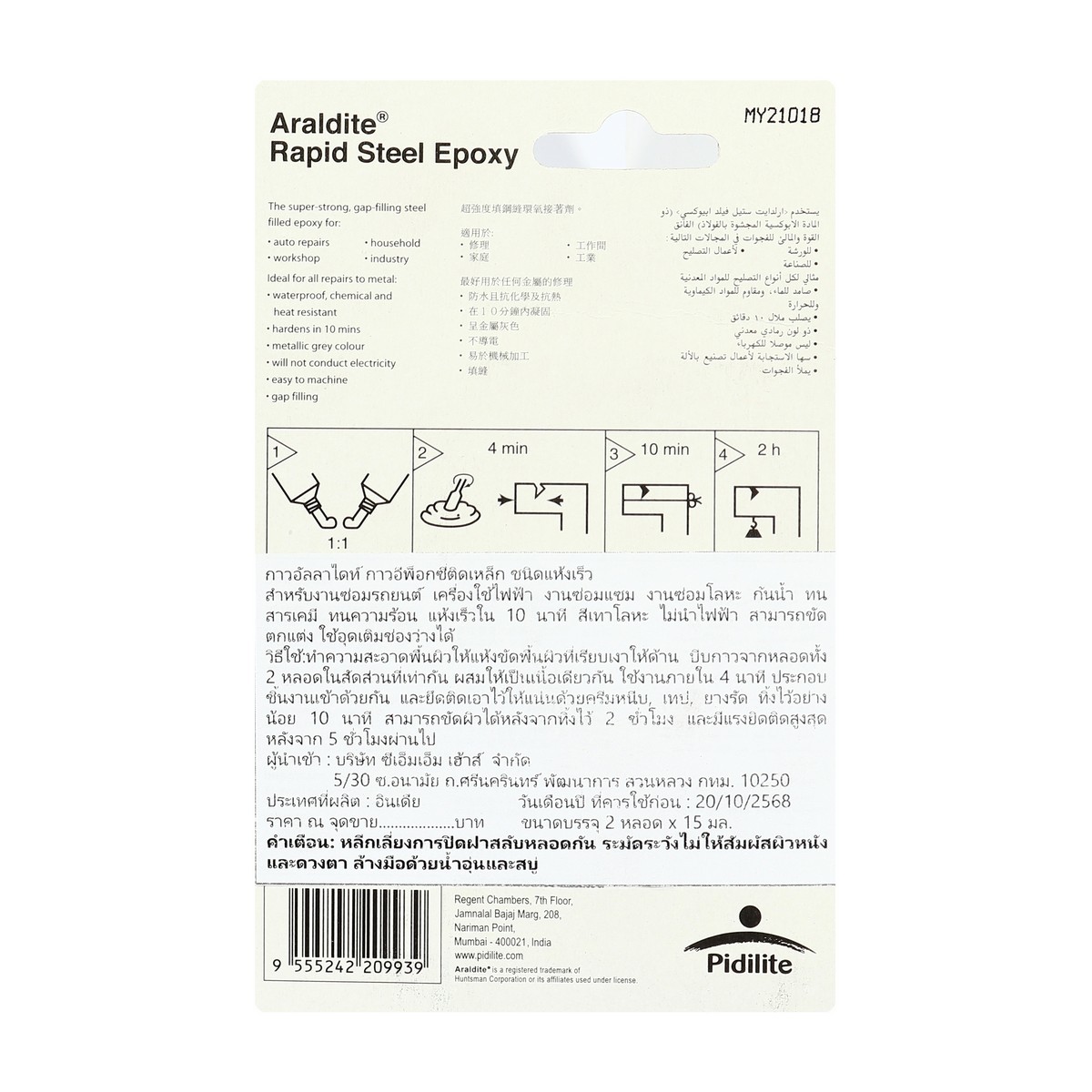กาวอีพอกซ์ซี่ สีเทา ARALDITE รุ่น Rapid Steel แบบผสม 2 หลอด ขนาด 2 X 15 มล. (หลอดสีเทา) สำหรับ