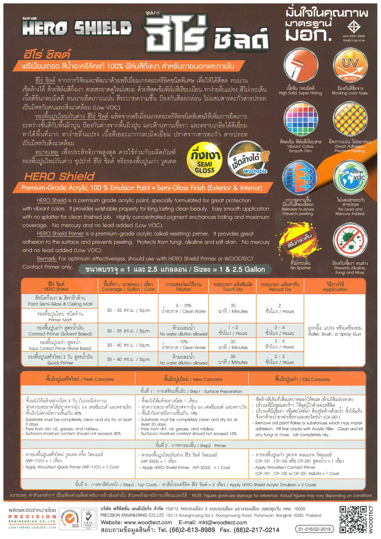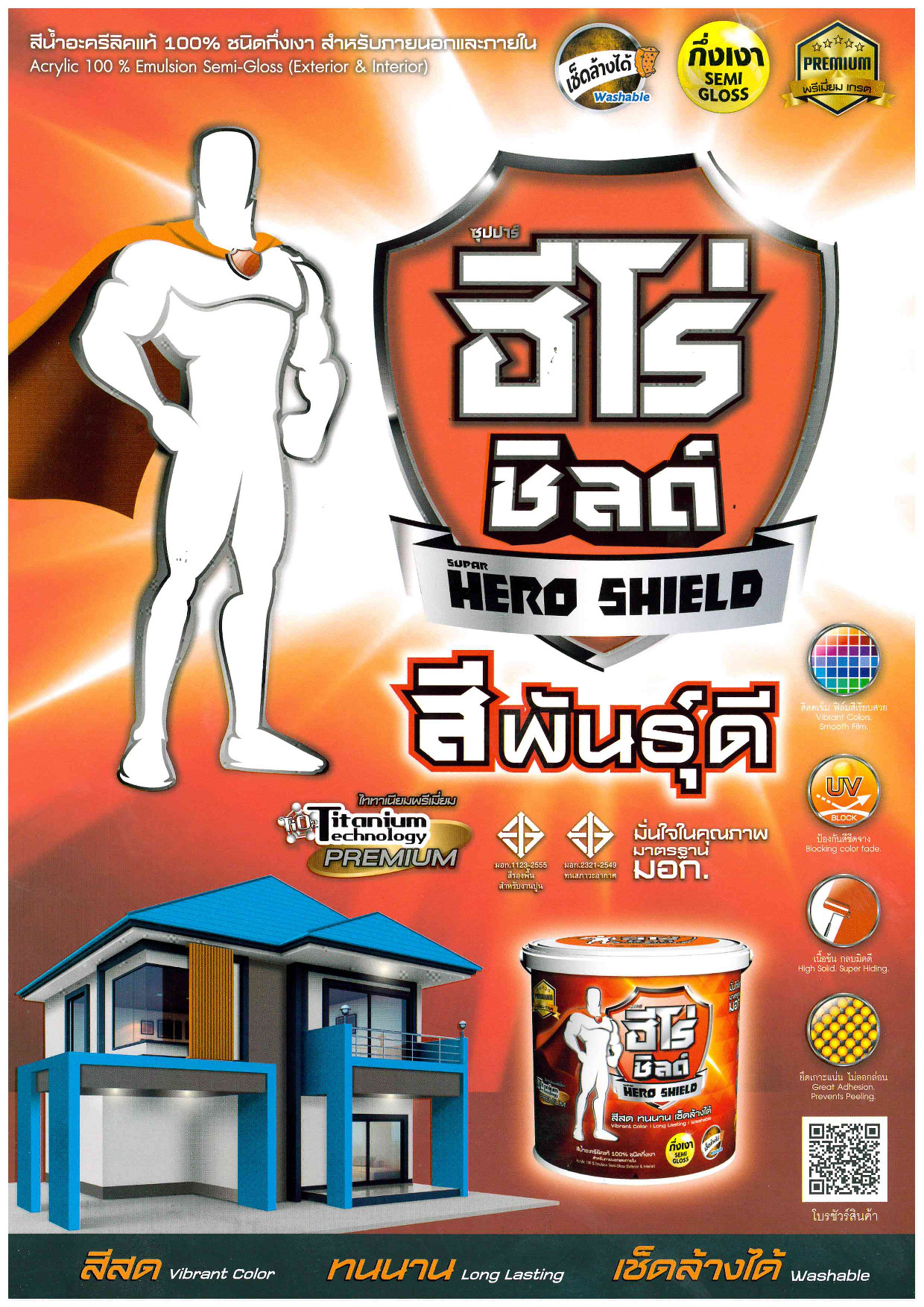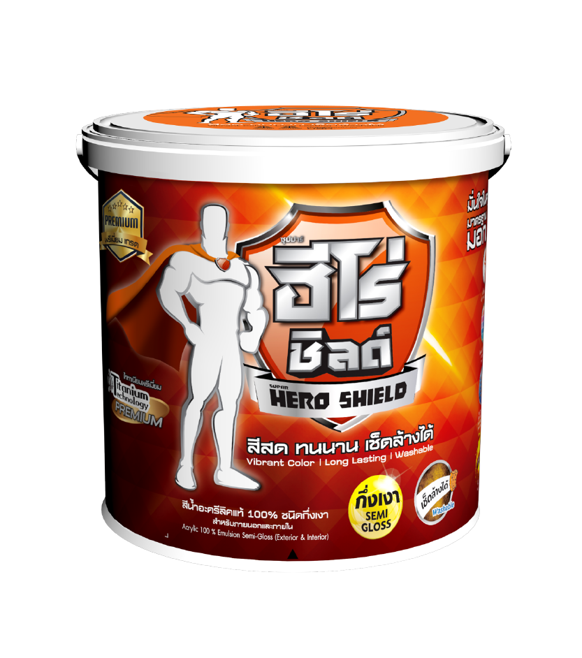 ฮีโร่ ชิลด์ พรีเมี่ยมเกรด สีน้ำอะครีลิคแท้ 100% ฟิล์มสีกึ่งเงา สำหรับภายนอกและภายใน